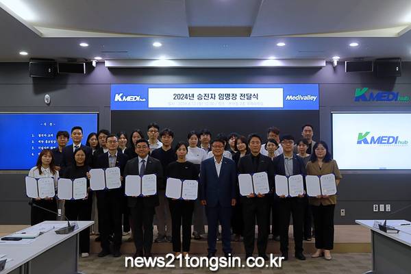 (뉴스21통신) 최우성 = 케이메디허브(대구경북첨단의료산업진흥재단, 이사장 양진영)는 지난 12일(월) 10명의 책임급 인사를 포함해 총 26명의 승진을 실시했다.