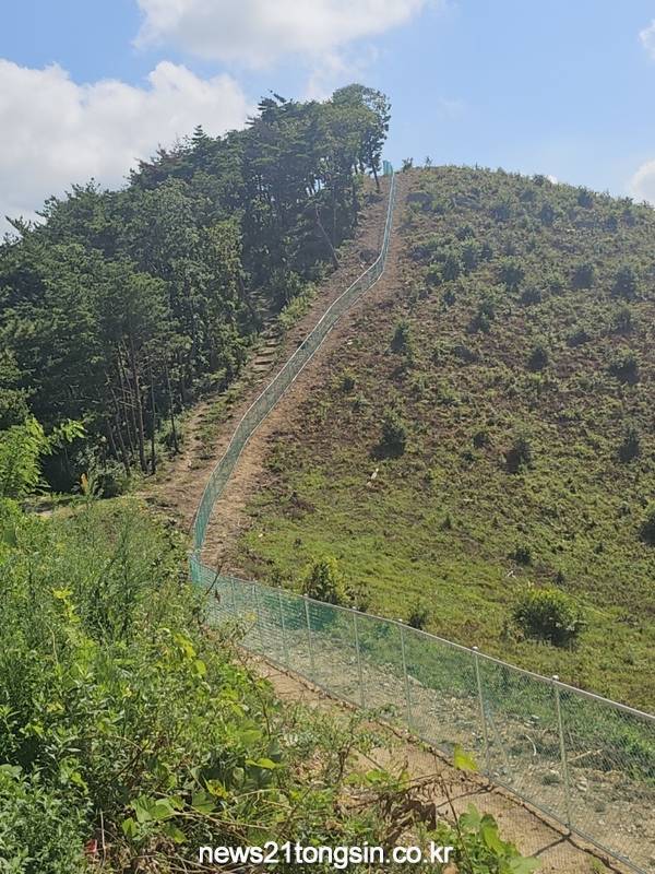 민원접수 사유는 2020년 3월 대형산볼로 인한 경계 펜스가 훼손되어 등산로에 대한 주민 안전이 필요하다는 인식을 하고 추진하여 2024년 8월16일 마무리 하였다.