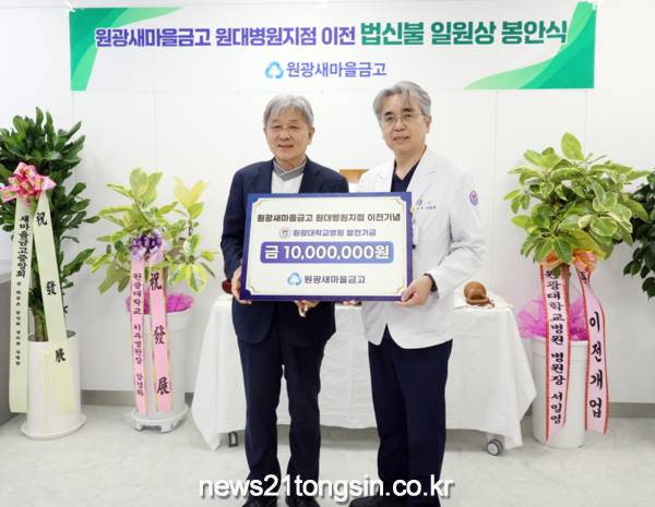 원광새마을금고는 지난 13일 원광대학교병원(병원장 서일영) 내 운영 중인 원대병원지점의 확장 이전 봉불식을 기념해 지역 의료서비스의 질적 향상과 지역민의 건강증진을 위해 원광대학교병원에 발전기금 1천만원을 기탁했다.