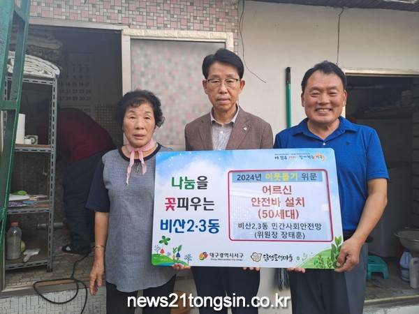 (뉴스21통신) 최우성기자 = (뉴스21통신) 최우성기자 = 대구 서구 비산2.3동 민간사회안전망(위원장 장태훈)은 8월 19일 거동이 불편한 어르신 50가구를 대상으로 화장실 등에 안전 손잡이를 설치하였다.