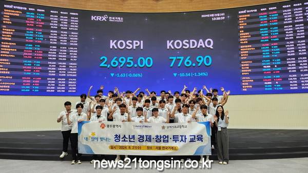 광주시가 미래를 이끌어갈 지역 청소년들을 대상으로 경제‧창업‧투자 교육을 진행했다. 광주광역시는 21일 서울 한국거래소 전시관 등에서 광주살레시오고 2학년 학생 40명이 참석한 가운데 ‘청소년 경제·창업·투자 교육’을 열고 전문가 특강과 현장체험 프로그램을 진행했다.