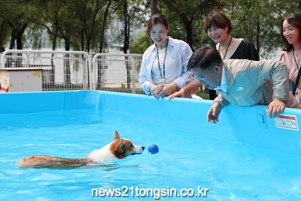 이날 오전 홍보단으로 참여한 염리동 반려견 동반 가족들은 한강이 보이는 캠핑장에서 반려견과 함께 뛰놀며 여가를 즐겼다. 특히, 하절기 캠핑장 이벤트인 ‘캠핑장에서 시원하개(dog)’ 물놀이장에서 무더위를 시원하게 식히며 소중한 시간을 보냈다.