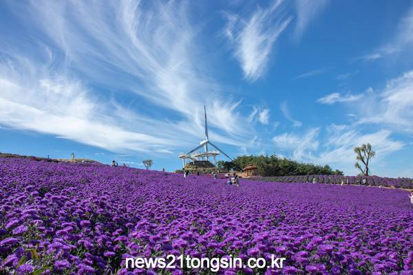 거창 별바람언덕 아스타 국화꽃은 9월 중순부터 개화를 시작하여 10월 초에 절정을 이룰 것으로 보인다.