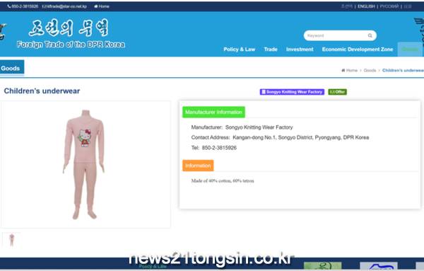수출용 북한 제품을 소개하는 북한 ‘조선의 무역’ 홈페이지.
