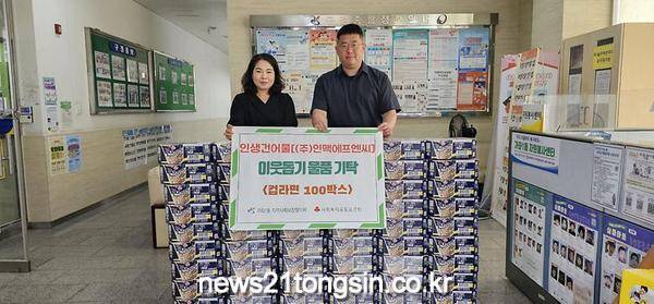 가좌1동 행정복지센터(동장 김미진)에서는 지난 8월 26일 인생건어물을 운영하는 ㈜인맥에프엔씨(대표 고형기)로부터 관내 취약계층을 위한 컵라면 100박스를 기탁받았다고 전했다.