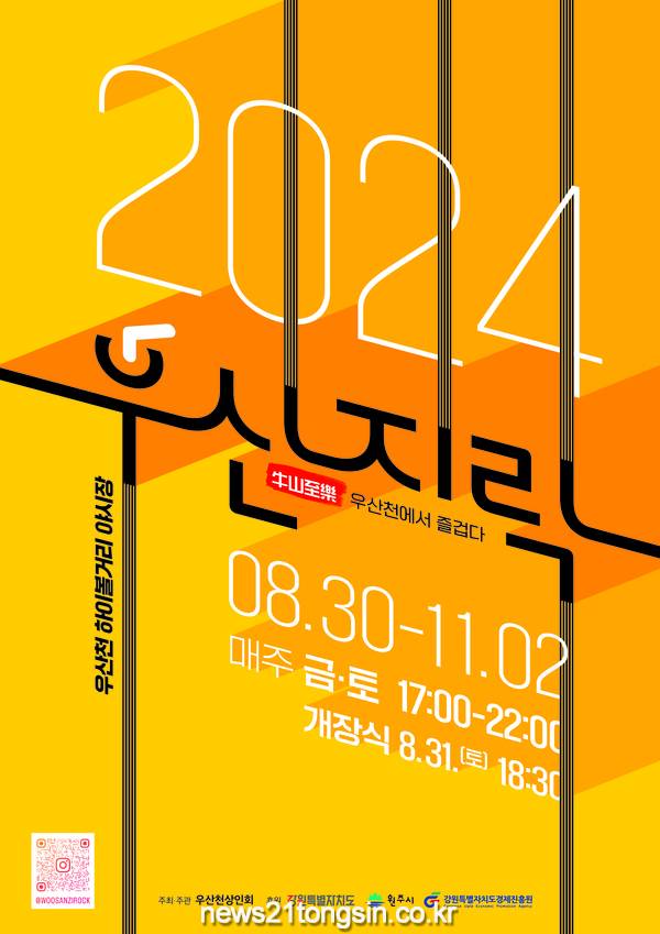 □ 원주시 우산천골목형상점가상인회(회장 최진영)는 2024 우산천 하이볼거리 야시장 ‘우산지락(牛山至樂: 우산천에서 즐겁다)’을 개최한다.□ 8월 30일(금)부터 11월 2일(토)까지 매주 금요일과 토요일에 우산천골목형상점가 일원(명동약국~서울식당 일원)에서 열리는 야시장에는 하이볼과 어울리는 다양한 먹거리 부스와 플리마켓이 운영된다.□ 특히 ‘거리노래방 특설무대’를 설치하여 참가자 전원에게 야시장에서 이용할 수 있는 상품권(총 상금 450만 원 상당)을 지급할 예정이며, 참가 신청은 현장 접수 또는 QR코드를 통해 신청하면 된다.□ 또한 야시장 방문객 대상으로 스탬프 투어 및 SNS 이벤트(인스타그램, 오픈 톡) 참여 시 하이볼 1잔(매회 100잔 한정)을 증정하는 이벤트를 진행한다.□ 개장식은 8월 31일(토) 오후 6시 30분 우산천골목형상점가특설무대(우산동 명동약국 옆)에서 개최하며, 주요내빈 축하인사, 축하공연 및 개장 컷팅식 등 풍성한 볼거리를 제공할 예정이다.□ 최진영 상인회장은 “성공적인 주말 야시장 사업을 위해 우산천 상인회원 여러분과 합심하여 준비하였으니 시민 여러분들의 많은 관심과 참여 부탁드린다.”라며, “주말 야시장 사업이 추진될 수 있도록 적극 협조하여 주신 원주시와 강원특별자치도 및 경제진흥원에 감사드린다.”라고 전했다.□ 원강수 원주시장은 “원주시에서 하이볼 하면 우산동이 떠오르게끔 우산동 상권 활성화를 꾀할 수 있는 새로운 명소가 생겨 매우 뜻깊게 생각한다.”라며, “우산천 하이볼거리가 원주의 핫플레이스로 성장할 수 있도록 행정적 지원을 아끼지 않겠다.”라고 전했다.□ 한편 원주시는 ‘2023 원주 하이볼축제’의 성공적인 개최로 지난해 전국 기초단체장 매니페스토 우수사례 경진대회에서 최우수상을 수상한 데 이어, 올해는 강원특별자치도에서 실시한 ‘2024년 전통시장 및 상점가 주말야시장’ 공모사업에 선정되며 우산천 하이볼거리의 유명세를 이어가고 있다.