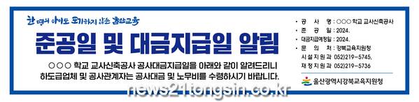 강북교육지원청은 건설공사 준공일과 대금 지급 예정일을 명시한 펼침막을 제작해 건설 현장에 한 달 동안 내걸어 건설 노동자들에게 알릴 예정이다.