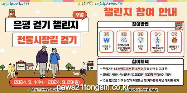 은평구(구청장 김미경)는 오는 4일부터 오는 29일까지 ‘은평 전통시장길 걷기’챌린지를 운영한다고 밝혔다.