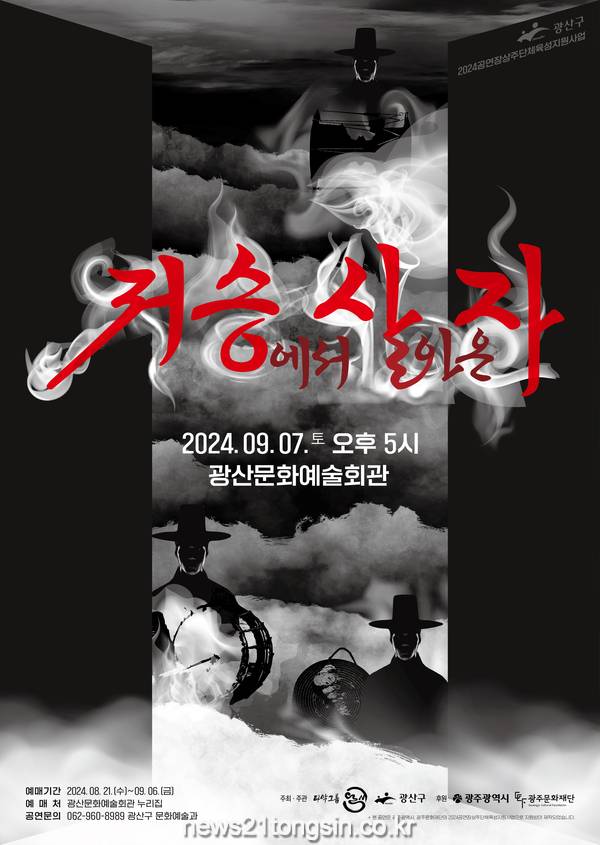 타악 퍼포먼스극 ‘저승에서 살아온 자’는 ‘2024 공연장 상주단체 육성지원 사업(후원 광주광역시, 광주문화재단)’으로 마련됐다. 지난 6월 ‘락의로’에 이은 두 번째 작품이다.