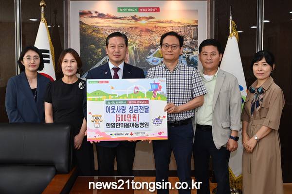 (뉴스21통신) 황태원기자 = 대구 남구에 소재한 한영한마음아동병원 이경훈 대표원장은 지난 8월 29일(목), 다가오는 추석 명절을 맞아 남구청에 사랑의 이웃돕기 성금 500만원을 기탁했다.