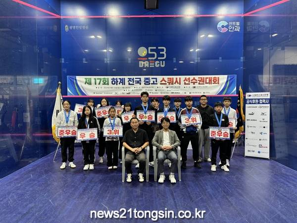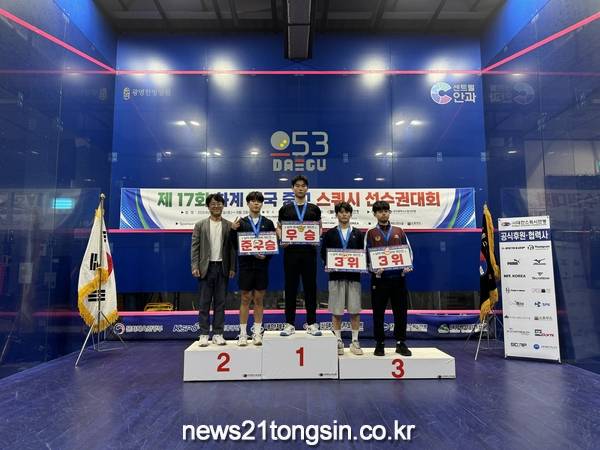 (뉴스21통신) 황태원기자 = 무더위가 아직 가시지 않은 대구스쿼시장에서 제17회 하계 전국 중ㆍ고 스쿼시 선수권대회가 이틀간 개최되었다. 전국에서 약 70여명의 중고등학교 선수들이 참가한 가운데, 남자18세이하부에 출전한 권용하(신명고등학교 3학년)선수가 우승을 차지하였다.