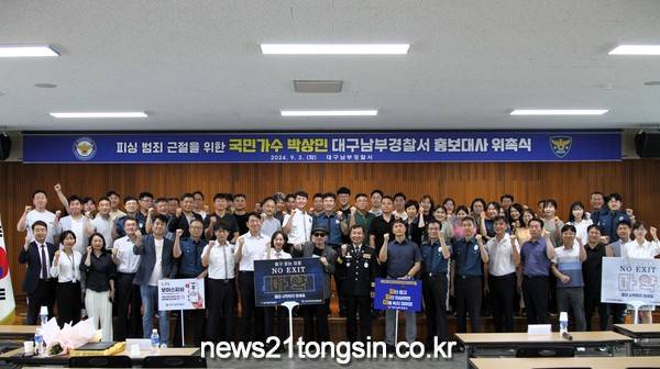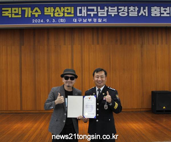 (뉴스21통신) 황태원기자 = 대구남부경찰서(서장 김상렬)은, 2024. 9. 3. 가수 박상민씨를 피싱 범죄 근절 홍보대사로 위촉했다.
