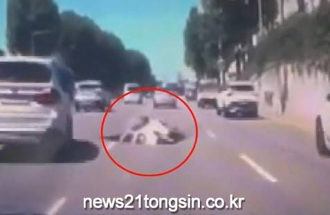 도로를 달리던 소형 SUV 한 대가 기우뚱하는가 싶더니, 순식간에 커다란 구덩이 속으로 떨어져 버린다.