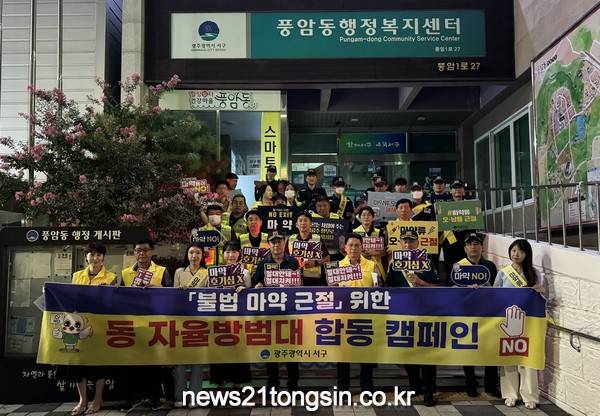광주광역시 서구는 지난 4일 풍암동 먹자골목 일대에서 동 자율방범대, 마약류 명예지도원과 함께 찾아가는 마약 근절·예방 캠페인을 실시했다.