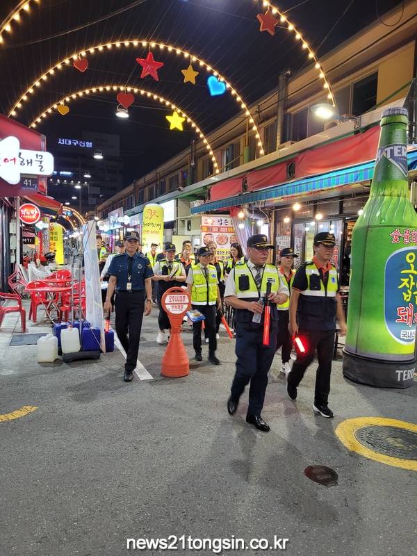 (뉴스21통신) 최우성기자 = 대구서부경찰서(서장 변인수) 범죄예방대응과에서는’24. 9. 5.(목) 20:00 「범죄예방전략회의 기반 공동체치안 활성화」의 일환으로, 비산2·3동 서부시장 ‘오미가미 거리’ 일대에서 범죄예방을 위한 기동순찰대와 방범협력단체 합동순찰을 실시하였다.