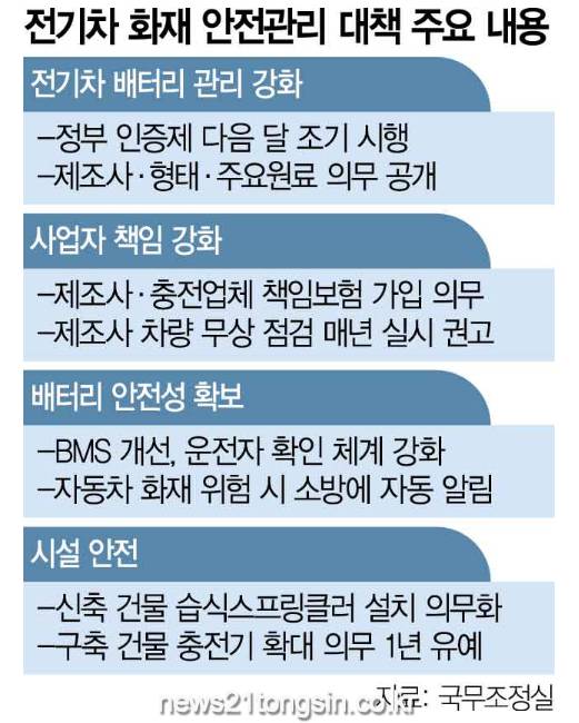 정부는 전기차가 확산하는 시기에 이번 화재가 자칫 전기차나 배터리에 대한 과도한 공포로 번지는 데 대한 우려를 나타냈다. 산업통상자원부 관계자는 “과거 태양광 에너지저장장치(ESS) 사고로 인해 배터리의 안전성을 높이기 위한 많은 노력이 있었다”며 “기술 발전으로 셀 자체 화재 위험은 줄고 BMS는 업그레이드됐다”고 설명했다.