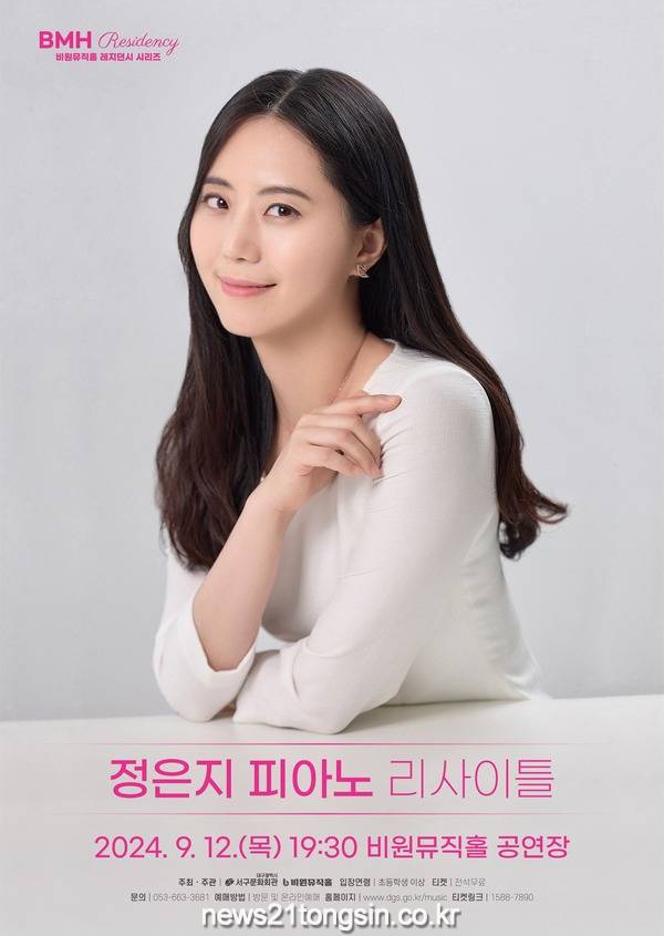 (뉴스21통신) 최우성기자 = 대구 서구 비원뮤직홀(관장 권수경)에서는 오는 9월 12일 목요일 19시 30분, BMH 레지던시 시리즈로 ‘정은지 피아노 리사이틀’을 개최한다.