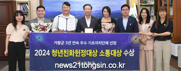 거창군은 국회사무처 소관 사단법인인 청년과 미래가 주관하는 ‘2024년 청년친화헌정대상’에서 ‘소통대상’을 수상했다고 9일 밝혔다.