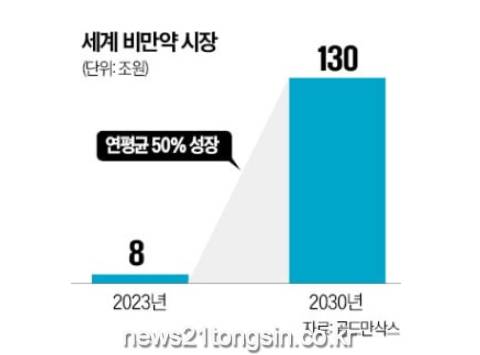 골드만삭스에 따르면 세계 비만약 시장은 지난해 기준 8조원 규모로 2030년 130조원까지 성장할 것으로 기대된다.