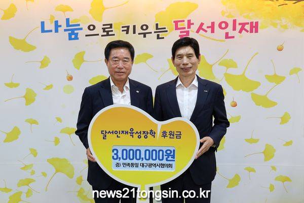 (뉴스21통신) 최우성기자 = 대구 달서구(구청장 이태훈)가 5일 민족통일 대구광역시협의회(회장 도재영)에서 지역 인재 육성을 위해 써달라며 3백만원의 후원금을 달서인재육성장학재단에 전달했다고 밝혔다.