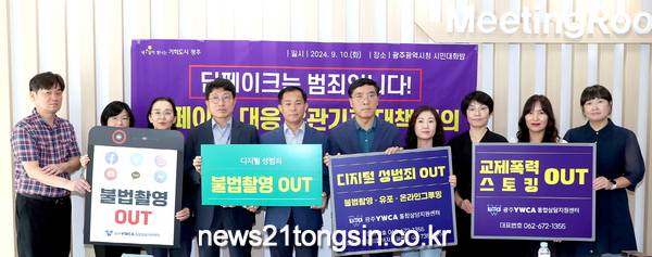 ▲ 딥페이크 성범죄 대응 유관기관 대책회의 광주시광역시는 10일 시청 1층 시민대화방에서 광주시 여성가족과, 상임인권옴부즈맨, 광주자치경찰위원회, 광주경찰청, 광주시교육청 등 관계자 20여명이 참석한 가운데 ‘딥페이크 성범죄 대응 관계기관 대책회의’를 개최했다.