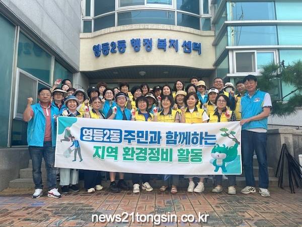 이날 통장협의회, 부녀회, 영등상권상인회, 주민자치위원회, 지역사회보장협의체의 회원과 행정복지센터 직원 등 50여 명은 도로와 상점가, 다중이용시설을 중심으로 환경정비를 펼쳤다.
