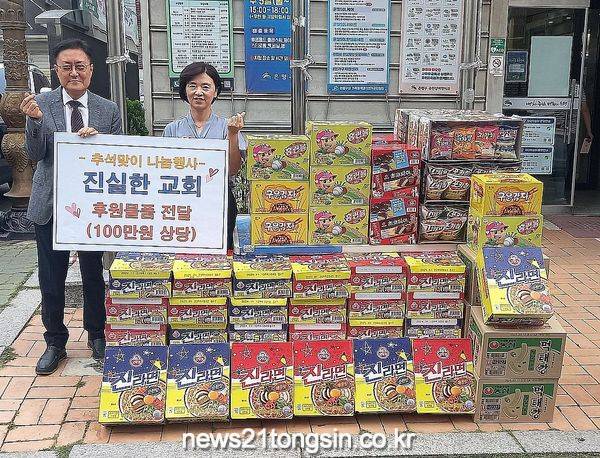 진실한 교회는 저소득 취약계층 가구와 지역 보호기관 아동들을 위해 추석맞이 이웃돕기 성품으로 과자, 라면 등을 후원했다.