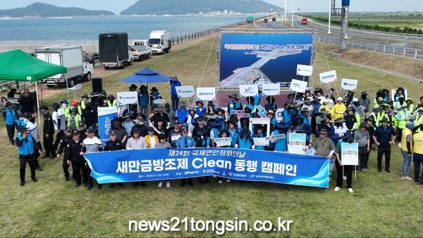 전북특별자치도는 ‘제24회 국제 연안정화의 날’을 맞아 11일 오후 새만금방조제 신시도항에서 야미도항까지 2.1km 구간을 대상으로 ‘새만금방조제 클린 동행 캠페인’을 실시했다고 밝혔다.