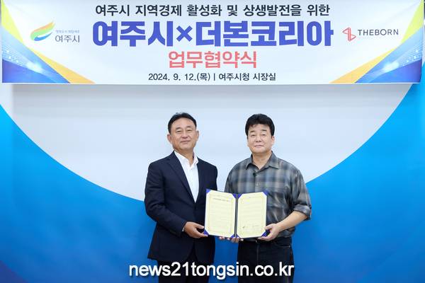 여주시(시장 이충우)는 원도심 및 지역경제 활성화를 위하여 9월 12일(목) 여주시청 시장실에서 ㈜더본코리아(대표 백종원)와 상생발전 업무협약(MOU)를 체결했다고 밝혔다.