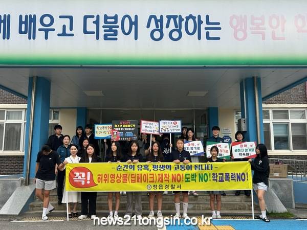 전북특별자치도 정읍경찰서(서장 김한곤)는 12일 정일중학교 정문에서 등굣길 학생들을 대상으로 딥페이크(허위영상물) 범죄와 학교폭력 예방을 위한 캠페인을 가졌다.