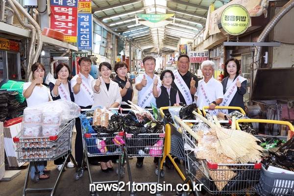 이날 행사에서 이학수 시장은 온누리 상품권을 활용해 지역 농산물과 제수용품, 생필품 등을 구매하며 시장 활성화를 도모했다.