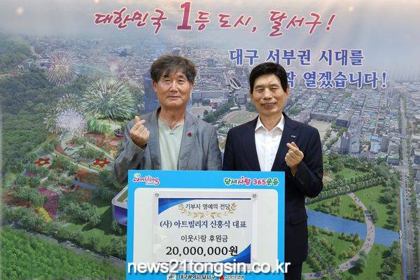 (뉴스21통신) 최우성기자 = 대구 달서구(구청장 이태훈)는 지난 10일 추석을 맞아 (사)아트빌리지(대표 신홍식)로부터 이웃사랑 후원금 2,000만원을 전달받았다고 밝혔다.