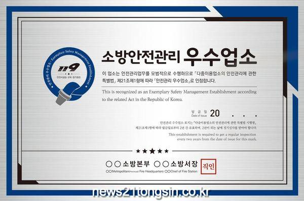 “다중이용업소 안전관리 우수업소 선정 제도”는 영업주의 자율적인 안전관리를 통해 소방안전 문화를 정착시키고, 안전관리에 대한 자긍심을 고취하기 위해 “다중이용업소의 안전관리에 관한 특별법”에 의해 운영되는 제도이다.