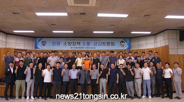 (뉴스21통신) 최우성 = 대구소방안전본부(본부장 엄준욱)는 4일(수) 오후 2시 달서소방서 대강당에서 70여명의 현장지휘관이 참석한 가운데 ‘2024년 청렴·소방정책 소통 공감 토론회’를 실시했다고 밝혔다.