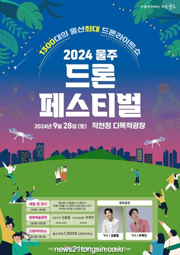 (뉴스21통신/우정석기자) = 드론을 주제로 하는 체험·공연 축제인 ‘2024 울주 드론페스티벌’ 행사가 오는 28일 작천정 다목적광장 일원에서 개최된다.