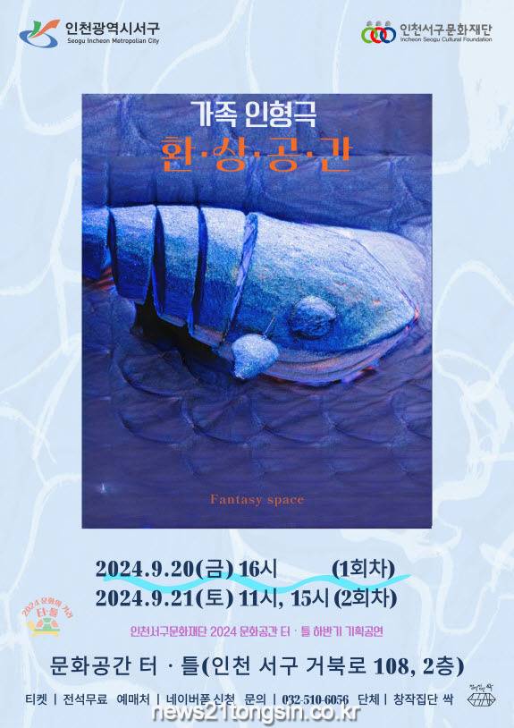 (재)인천서구문화재단은 문화의 거리 「문화공간 터․틀」에서 인형극 ‘환상 공간’을 9월 20일(금)~21(토) 양일간 총 3회 개최한다고 밝혔다.
