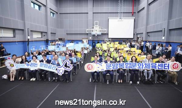 운암복합문화체육센터는 북구 운암동 경양초등학교 유휴부지에 총사업비 133억원(국비 21억원, 시비 37억원, 구비 43억원, 교육청 30억원)을 투입, 지하 1층~지상 3층 연면적 4170.1㎡ 규모의 주민 생활형 사회기반시설(SOC)이다.