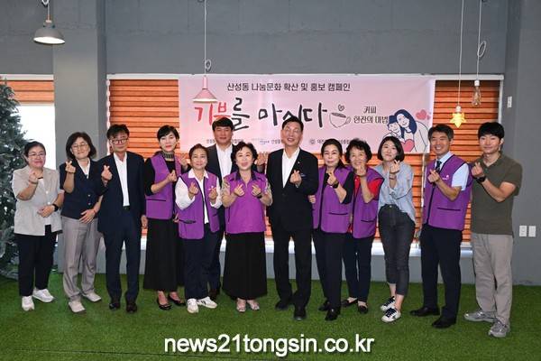대전 중구 산성동(동장 정혜은)은 23일 산성동 내 커피숍에서 지역사회보장협의체(위원장 한현희)주관으로 기부 문화 활성화 사업인‘기부를 마시다’캠페인을 개최했다고 밝혔다.