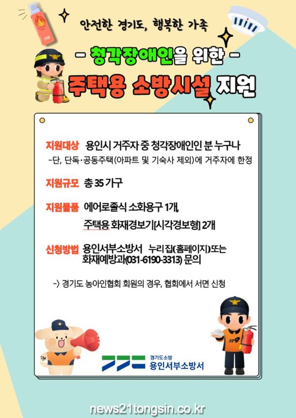 설치희망자는 10월 말까지 용인서부소방서 누리집(홈페이지) 또는 화재예방과(031-6190-3313)로 문의하면 된다.