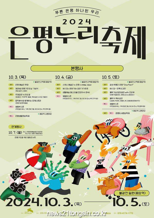 은평구(구청장 김미경)가 내달 3일부터 5일까지 응암역 주변 불광천 산책로에서 ‘2024 은평누리축제’를 개최한다고 밝혔다.