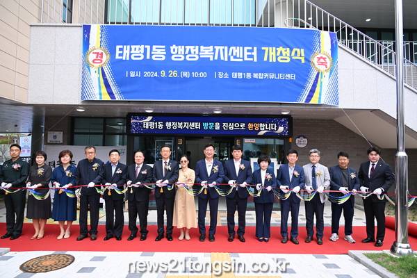 이날 개청식은 김제선 중구청장을 비롯해 시·구의원, 지역 주민 등 150여 명이 참석한 가운데 식전공연, 경과보고, 기념사, 테이프커팅, 시설관람 순으로 진행됐다.기존 태평1동 행정복지센터는 1988년에 지어진 건물로 노후화된 시설과 공간 협소로 청사를 이용하는 주민들이 많은 불편을 겪어왔다.이에, 중구는 총 사업비 86여억 원을 투입해 태평동 340-20번지 일원에 지하 1층, 지상 4층 연면적 1,676㎡ 규모로 행정복지센터 기능을 포함한 복합커뮤니티센터 건립 계획을 수립한 후 2023년 1월 착공, 2024년 7월에 공사를 완료하여 지난 8월 26일부터 신청사에서 업무를 개시했다.신청사는 ▲1층-민원실, 복지상담실, 주차장(17면) ▲2층-다함께돌봄센터, 작은도서관 ▲3층-예비군태평동대, 주민자치프로그램실 ▲4층-다목적홀 등으로 구성되어 주민들이 다양한 활동을 할 수 있는 복합 문화공간으로 활용될 예정이다.김제선 중구청장은“태평1동 주민들의 오랜 숙원사업인 신청사 개청이 완료돼 매우 기쁘다.”라며, “더 나은 행정·복지 서비스를 제공하고 지역 주민의 화합과 소통의 중심지가 될 수 있도록 센터 운영에 만전을 기하겠다.”라고 말했다.