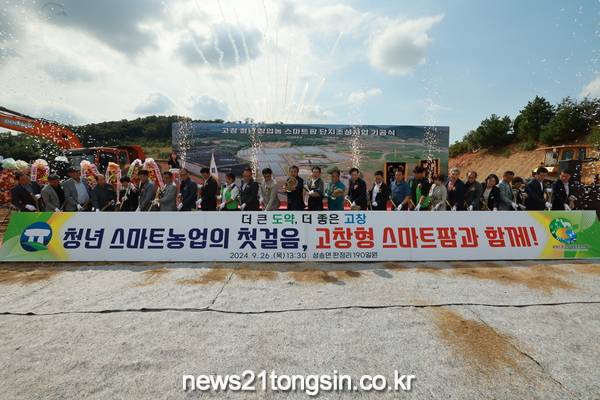 26일 고창군에 따르면 이날 오후 2시 고창군 성송면 판정리에서 ‘고창 청년농업인 스마트팜 단지 기공식’이 열렸다.