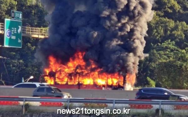 화재 당시 버스는 서울에서 진천을 향하고 있었으며 탑승객 19명이 대피한 것으로 확인됐다.
