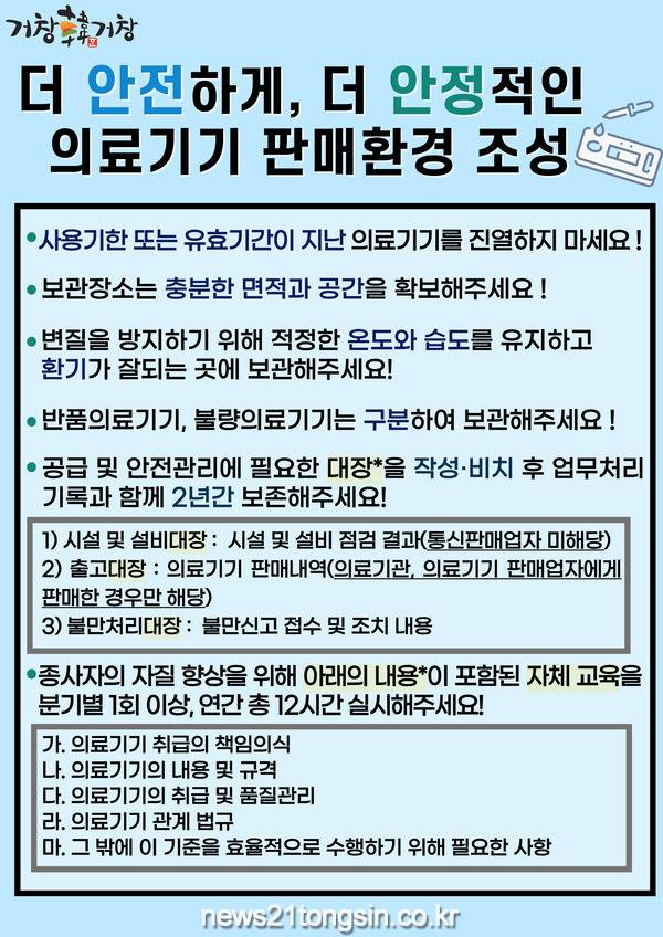 거창군은 잠재 위험요인에 대한 선제적 안전관리로 사각지대 해소를 위해 지난 23일부터 30일까지 3분기 의료기기 판매업소 지도·점검을 시행했다고 밝혔다.