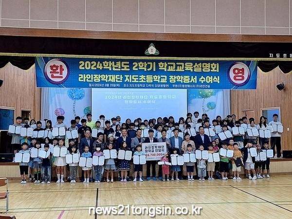 지도초등학교 정일영 교장은 “이번 장학금은 학생들에게 큰 격려와 힘이 될 것”이라며 “아이들이 밝고 건강하게 성장할 수 있도록 지도초등학교도 최선을 다하겠다”고 감사의 뜻을 표했다.