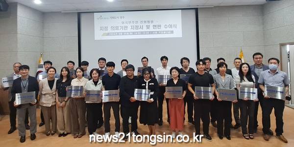 ▲ 사진_외국인친화병원 현판식 전달광주광역시는 외국인주민이 안심하고 편하게 진료받을 수 있는 ‘외국인주민 친화병원’ 20곳을 지정했다.
