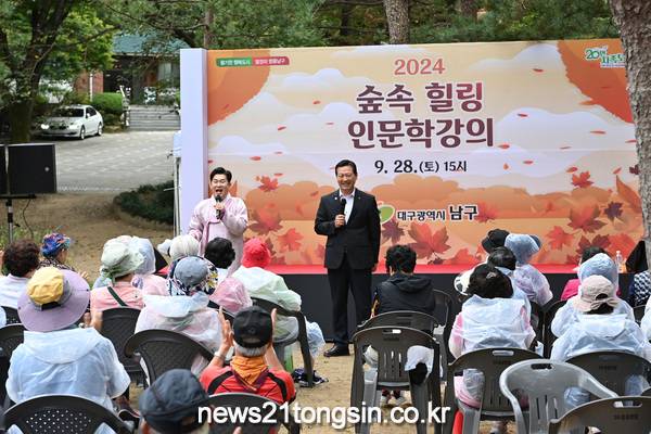 (뉴스21통신) 황태원기자 = 대구 남구는 지난 28일(토) 자연 친화형 힐링 인문학 프로그램인 2024년 하반기 ’숲속 힐링 인문학 강의 ’를 개최하였다.