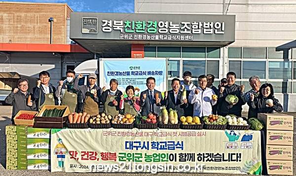 군위군은 2일 오전 군위군 친환경농산물 학교급식지원센터에서 친환경재배농가 10여명이 참석한 가운데 대구시 학교급식 시범공급 개시를 축하하는 행사를 개최했다.