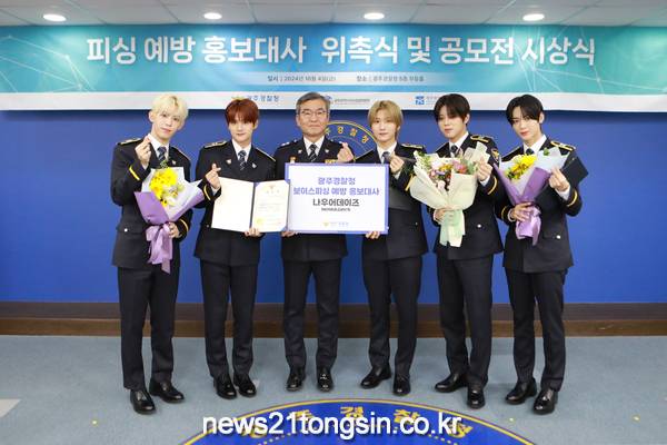 광주경찰청(청장 박성주)은 최근 급증하는 피싱범죄 피해예방 및 홍보를 위해 아이돌 그룹 나우어데이즈(NOWADAYS, 큐브엔터테인먼트 소속)를 피싱예방 홍보대사로 위촉했다.