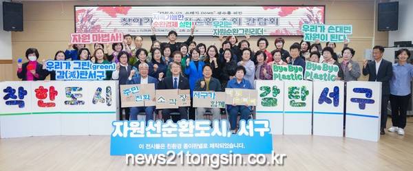 강 시장은 이어 “‘지구를 지켜야 한다’는 사명감을 갖고 현장에서 연일 노력하고 계신 지구지킴이 자원순환관리사들의 노고에 감사드린다”며 “매년 최악의 기상이변을 겪고 있는데, 이는 자식·손주 세대에 더 많은 영향을 끼칠 것이다. 우리는 부모의 마음으로, 지구를 후손들에게 잠시 빌려 쓴다는 마음으로 자원순환도시를 만드는 데 힘을 모아야 한다. 서구가 자원순환리더로 앞장서 달라”고 당부했다.